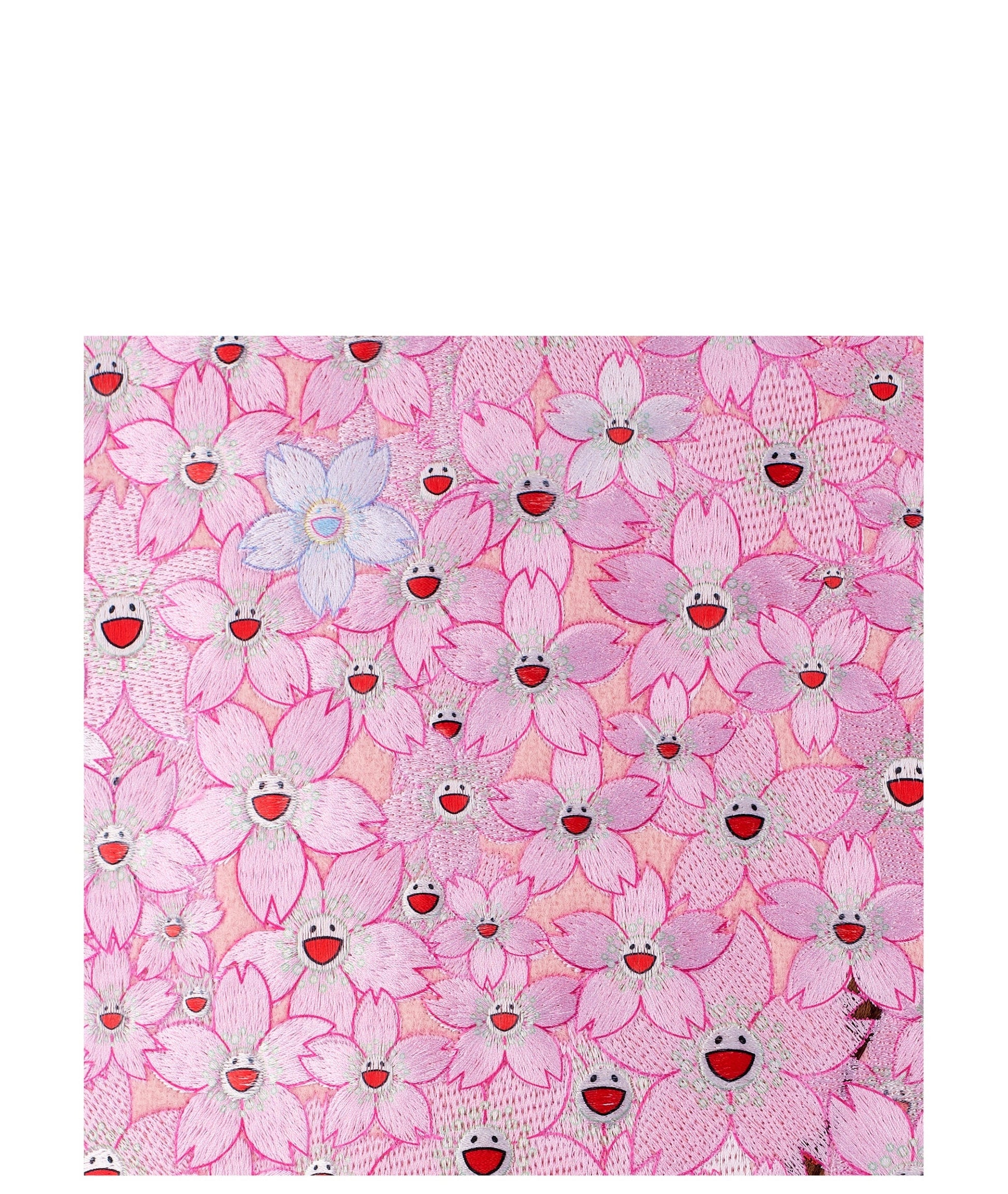 Mononoke made Varsity Jacket Pink Sakura features "Sakura," a popular character in Takashi Murakami's artwork. The skull evokes a sense of memento mori (remember death), and for Murakami, it also represents the image of Japan's defeat in the war. Furthermore, the all-over composition of the accumulated skulls incorporates elements of abstract expressionism. This piece, incorporating Takashi Murakami's cherry blossom artwork, is a symbolic item of this collection, created with advanced techniques and an enormous amount of time.
